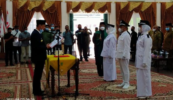 Bupati Rokan Hilir (Rohil) Afrizal Sintong secara langsung melantik dan mengambil sumpah jabatan tiga penjabat Penghulu. Pelantikan dilaksanakan di Gedung Misran Rais, Bagansiapiapi, Senin (23/8/2021).