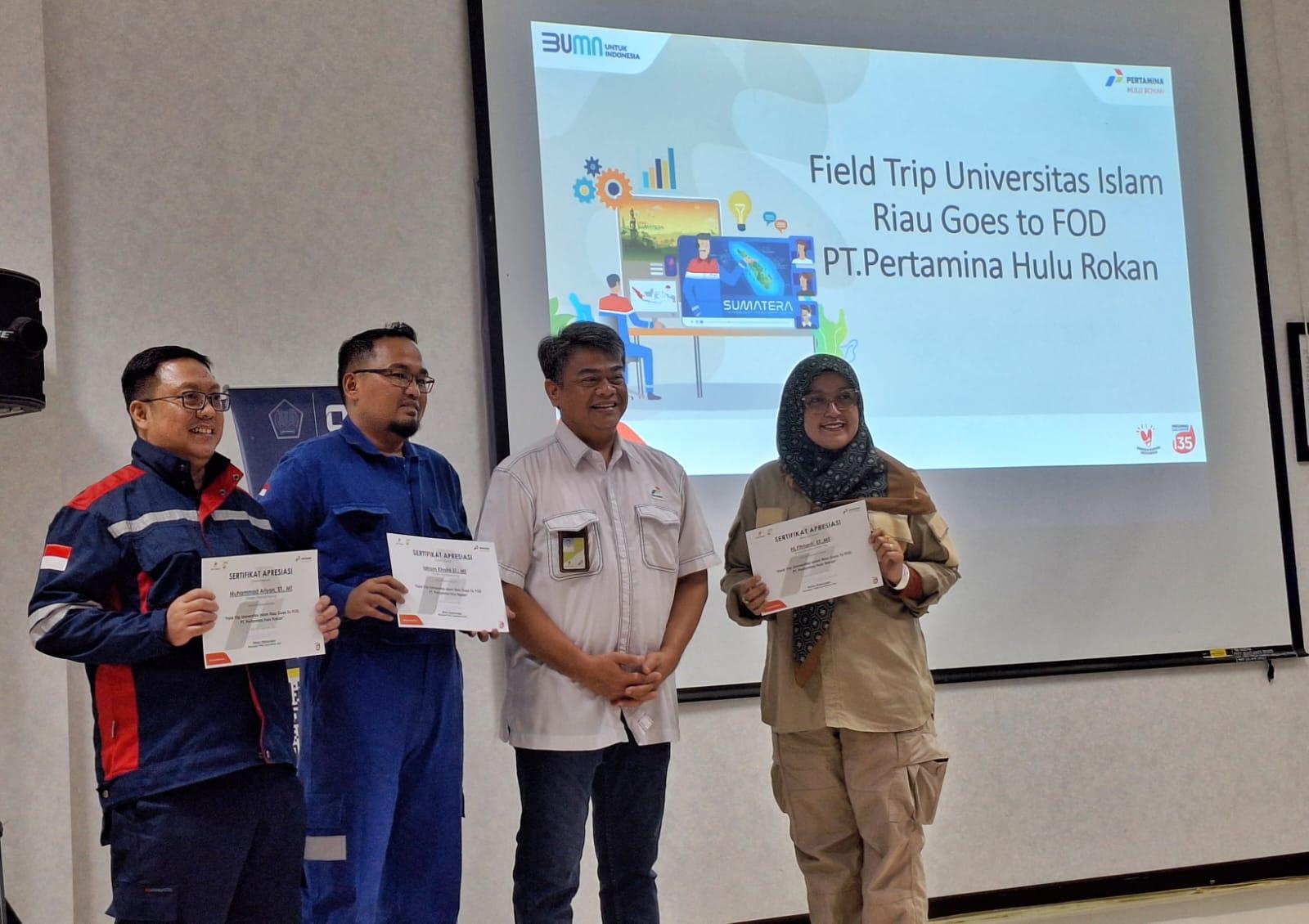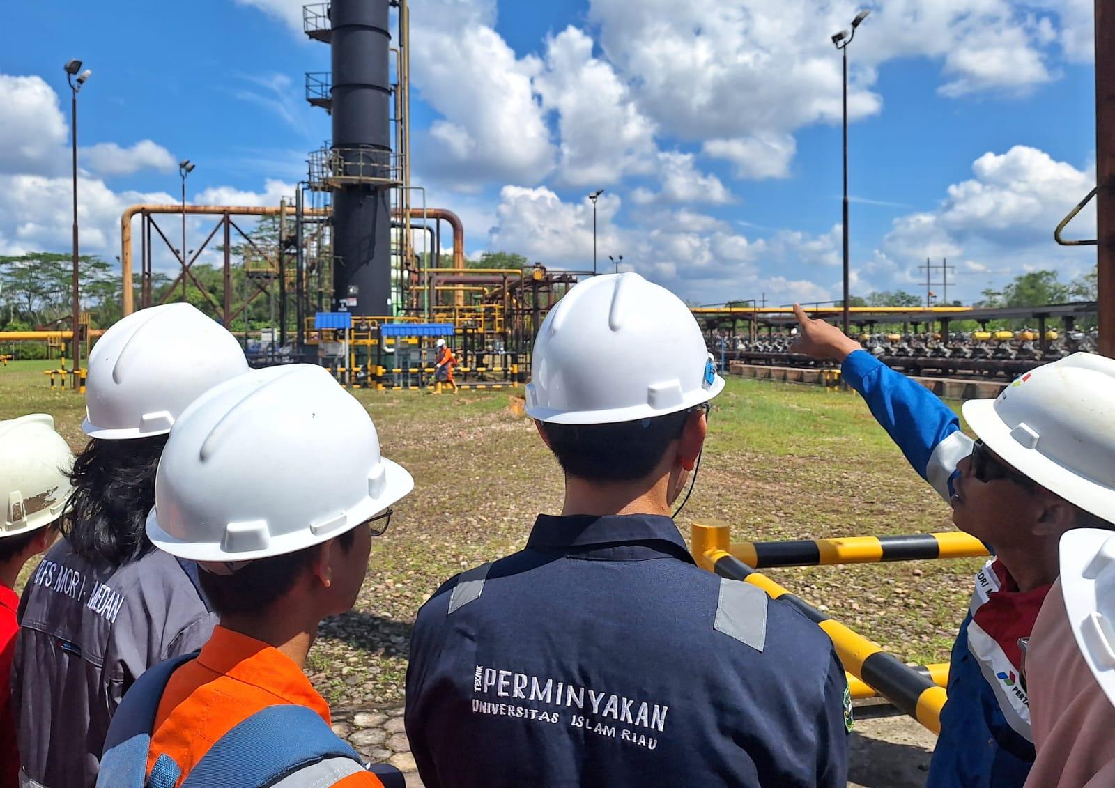 DURI-(RI)-Mahasiswa yang tergabung di Pusat Informasi dan Edukasi Migas Center Universitas Islam Riau (UIR) berkunjung ke area operasi PT Pertamina Hulu Rokan (PHR) WK Rokan. Kedatangan sebanyak 25 mahasiswa dan dosen ini guna belajar dan melihat langsung proses produksi migas di area operasi PHR WK Rokan di Duri Field, Senin (20/11/2023).