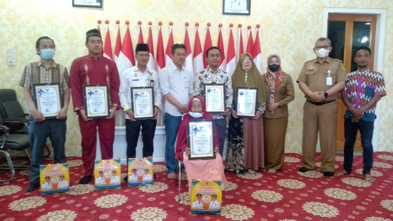 Bupati Rokan Hilir Afrizal Sintong, Selasa (9/11/2021) di Mess Pemda Rohil kembali menyerahkan piagam penghargaan dan bingkisan kepada tokoh pendiri maupun ahli waris pendiri Rohil yang belum pernah mendapatkan penghargaan sebelumnya.
