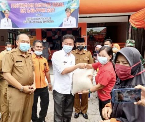 Bupati Rohil Afrizal Sintong meminta kepada semua pihak wajib untuk mendukung dan mengawasi praktek kerja pihak pelaksana bantuan BST dan BB-PPKM, hal tersebut disampaikannya saat menyerahkan secarara simbolis bantun Sosial Tunai dan Beras Bulog Pemberlakuan Pembatasan Kegiatan Masyarakat ( BST & BB-PPKM) untuk masyarakat miskin. Kegiatan dipusatkan dikantor Pos Bagansiapiapi,Selasa (27/7/2021).