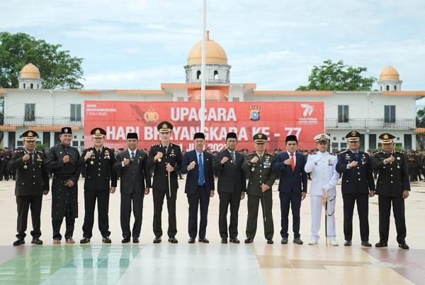 ROKAN HILIR-(RI)-Bupati dan Wakil Rokan Hilir (Rohil) Afrizal Sintong SIP - H Sulaiman SS MH hadiri upacara peringatan Hari Ulang Tahun (HUT) Bhayangkara ke-77 tahun 2023, Sabtu (1/7/2023).