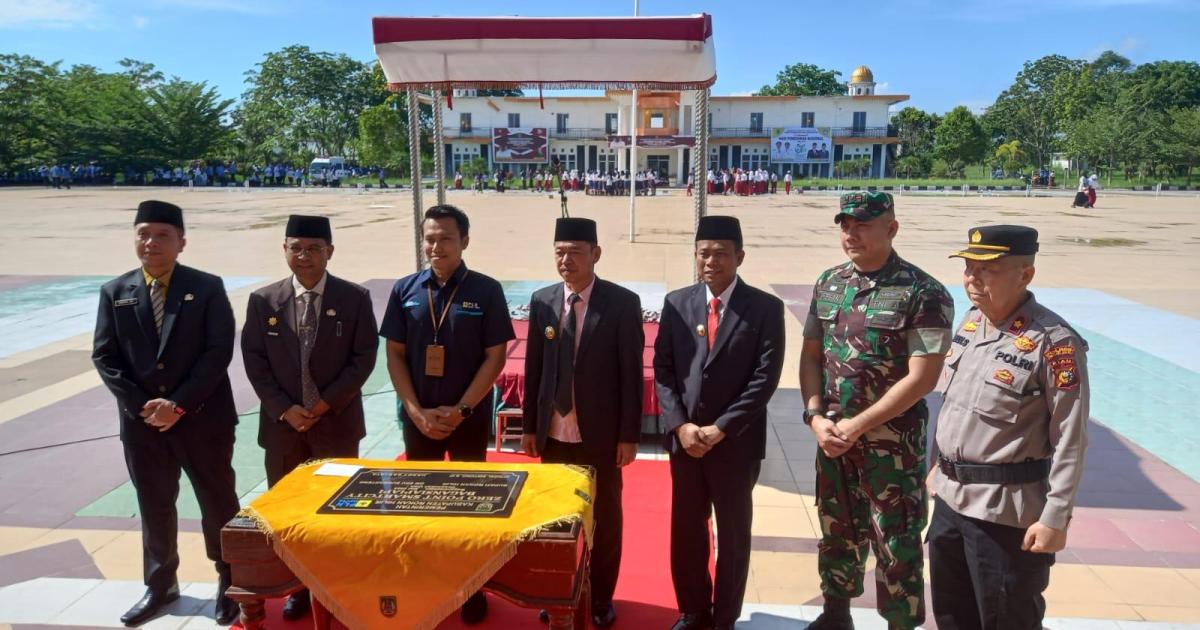 ROHIL, - Bupati Rokan Hilir Afrizal Sintong SIP didampingi Wakil Bupati H Sulaiman SS MH dan Kadis Kominfotik Indra Gunawan SE MH melakukan peninjauan lokasi Zero Point smart city yang berlokasi di jalan Merdeka depan Dekranasda Bagansiapiapi, Selasa (2/5/2023).