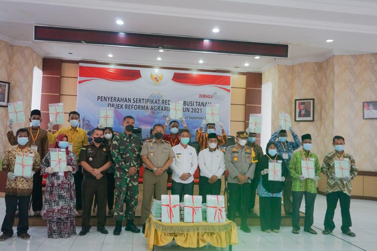 Bagansiapiapi - Pemerintah Kabupaten Rokan Hilir (Rohil) menyerahkan sebanyak 1551 sertifikat tanah kepada masyarakat Kecamatan Pekaitan, Rabu (22/9/2021) di kantor Badan Pengelolaan Keuangan dan Aset Daerah (BPKAD) di Bagansiapiapi.