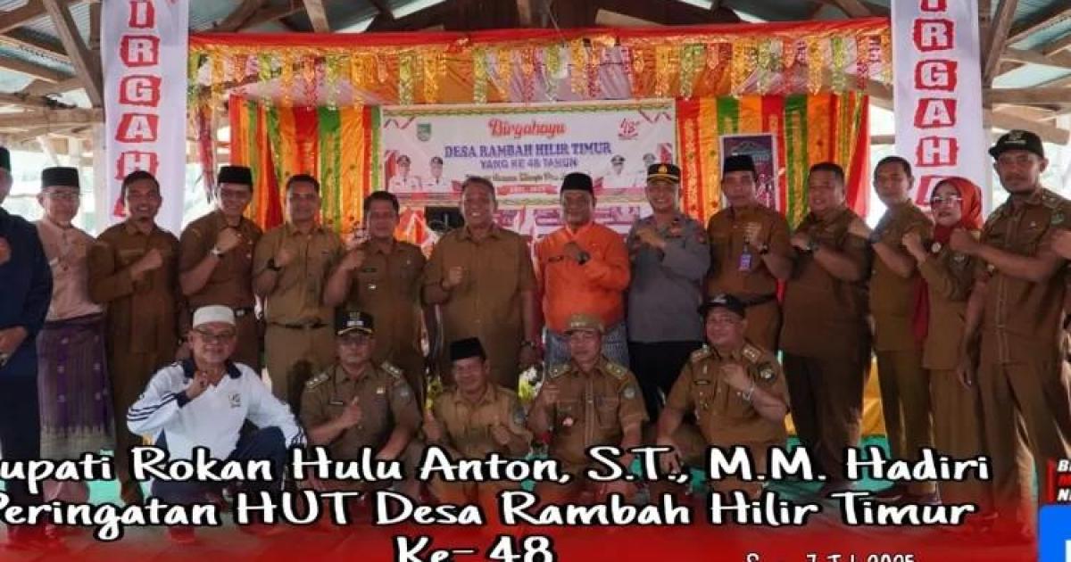 RIAUIDETITAS.COM-ROHUL-Bupati Rokan Hulu (Rohul) Anton, S.T, M.M hadiri peringatan Hari Ulang Tahun Desa Rambah Hilir Timur yang ke 48 tahun, Kegiatan dengan tema "Bangkit Bersama Menuju Desa Sejahtera" berjalan lancar dan meriah yang dilaksanakan di Los Pasar Surau Munai, Senin (07/06/2025).