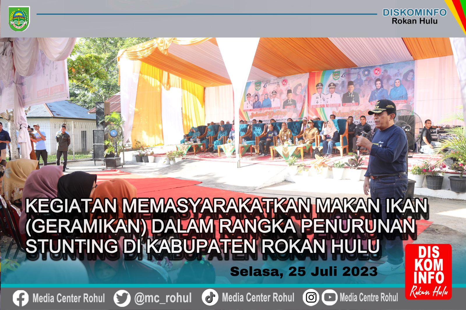 Dalam mencegah stunting yang dikenal juga dengan gagal tumbuh anak perlunya dilakukan pola hidup sehat dengan menjaga kebersihan rumah dan lingkungan serta senantiasa memberikan makanan yang bergizi salah satunya dengan membiasakan memakan ikan yang banyak mengandung protein sehat, serta memberikan kecerdasan pada anak. Demikian disampaikan Bupati Rokan Hulu H.Sukiman saat menghadiri acara Gerakan memasyarakatkan makan ikan (gemarikan) dalam rangka penurunan stunting di Desa Muara Musu Kecamatan Rambah Hilir, Selasa (25/7/2023).