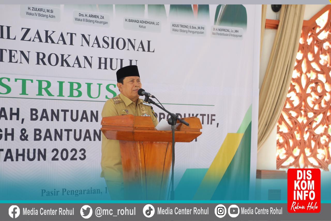 Distribusi bantuan zakat produktif tahun 2023 ini disampaikan Bupati disalurkan dalam tiga kriteria yakni, rehab rumah, bantuan usaha produktif serta Bantuan Mubaligh dan Guru mengaji yang ada di Kabupaten Rokan Hulu.