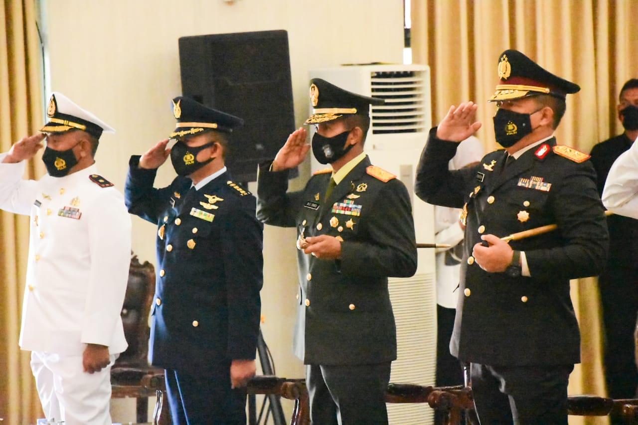 PEKANBARU– Dipimpin Presiden RI, Joko Widodo (Jokowi) Danrem 031 Wira Bima, Brigjen TNI M Syech Ismed SE MHan bersama Wakil Gubernur Riau, Kapolda Riau Irjen Pol Agung Setya Effendi serta Forkopinda Riau lainya, ikuti Upacara memperingati Hari Lahir Pancasila, Selasa (1/6) di Gedung Balai Serindit, Pekanbaru.
