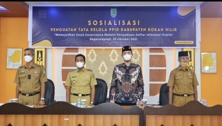 Bagansiapiapi- Dinas Komunikasi Informatika Statistik dan Persandian kabupaten Rokan Hilir (Rohil) gelar kegiatan Sosialisasi Penguatan Tata Kelola Pejabat Pengelola Informasi dan Dokumentasi (PPID) Kabupaten Rohil Tahun 2021 yang digelar di ruangan rapat kantor Badan Perencanaan Pembangunan Daerah (Bappeda) Rohil tepatnya di Batu Enam, Bagansiapiapi, Selasa (26/10/2021), dengan tema "Mewujudkan Good Governance Melalui Penyediaan Daftar Informasi Publik".