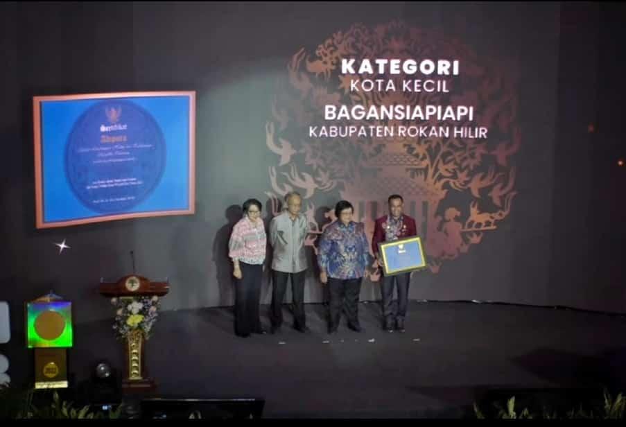 JAKARTA-(RI)-Bupati Rokan Hilir diwakili Sekda Rohil Fauzi Edrizal S.Sos,M.Si terima langsung Sertifikat Adipura 2022. Sertifikat diserahkan Mentri LHK menteri lingkungan hidup dan kehutanan prof DR. Siti Nurbaya Bakar di dampingi dirjen PSLB3.