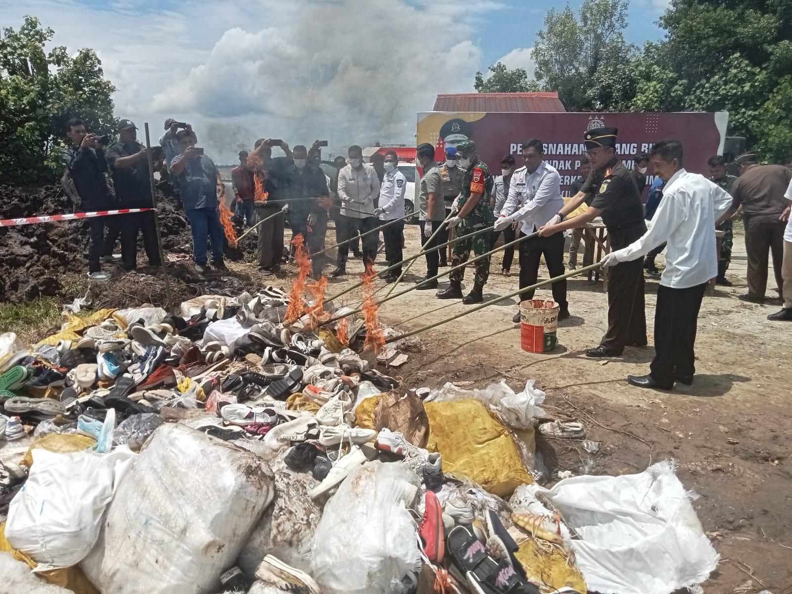Kejari Bengkalis Musnahkan 3.976 Pasang Sepatu Bekas