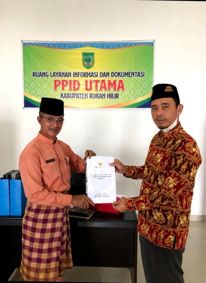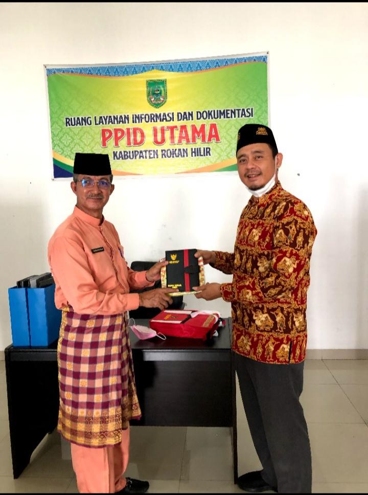 BAGANSIAPIAPI - Komisi Informasi Provinsi Riau dalam hal ini yang diwakili oleh wakil ketua Komisi Informasi Provinsi Riau kunjungi Dinas Komunikasi Informatika Statistik dan Persandian (Diskominfotiks) Kabupaten Rokan Hilir dalam rangka monitoring dan evaluasi sekaligus penyerahan SAQ (Self Assesment Questionnaire) pengelolaan layanan PPID (Pejabat Pengelola Informasi dan Dokumentasi) tahun 2021, bertempat di ruang Kepala Dinas Kominfotiks Rohil , Rabu (29/9/2021).