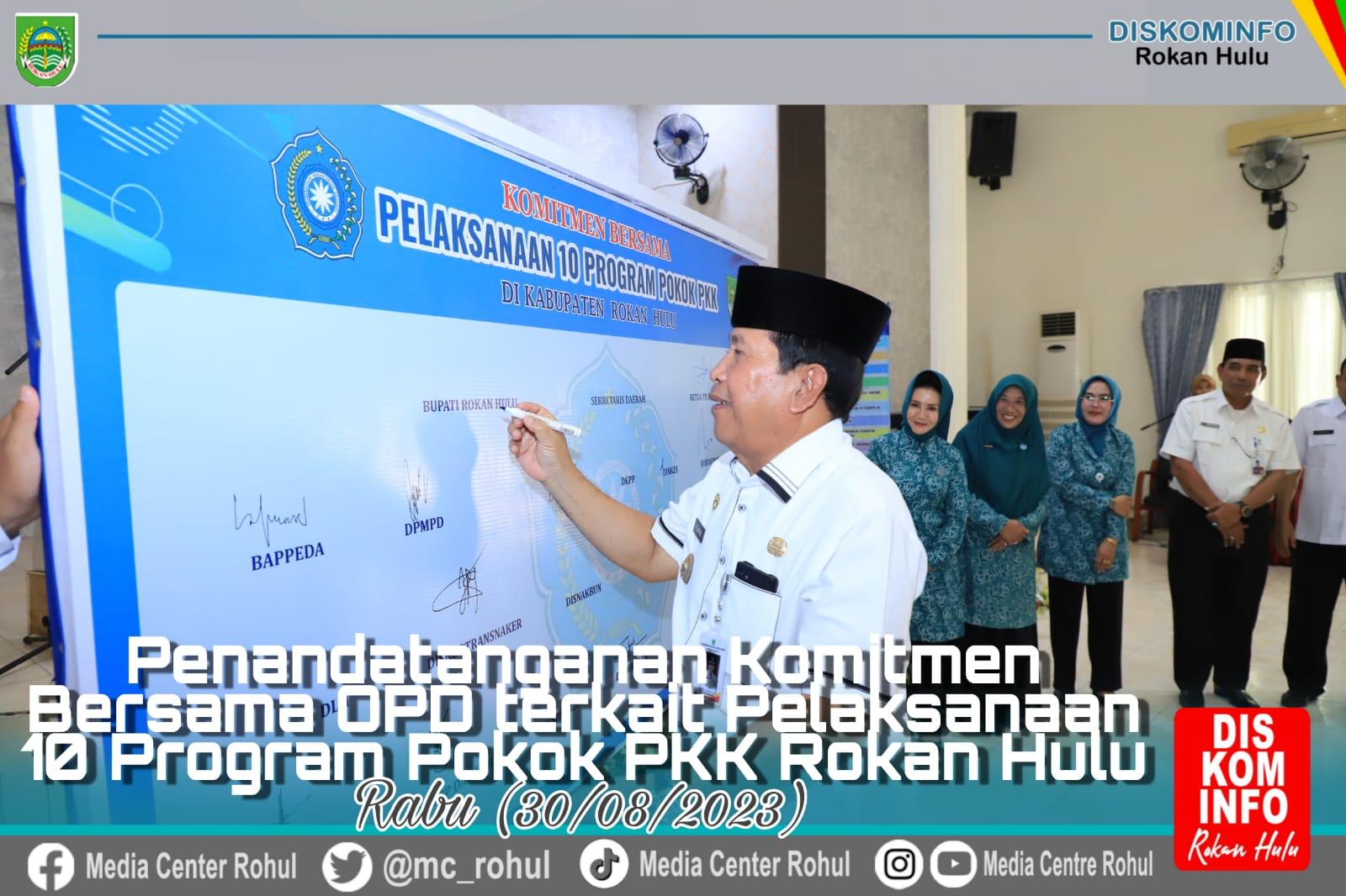 Dengan adanya penandatanganan Komitmen Bersama tersebut, Bupati Sukiman mengaku pentingnya OPD mendukung kegiatan PKK sesuai tugas pokok dan fungsi OPD serta sinkronisasi kegiatan TP PKK dengan kegiatan OPD, sehingga pelaksanaan dan hasilnya akan lebih efektif, dengan harapan PKK Rohul lebih maju dan berprestasi.