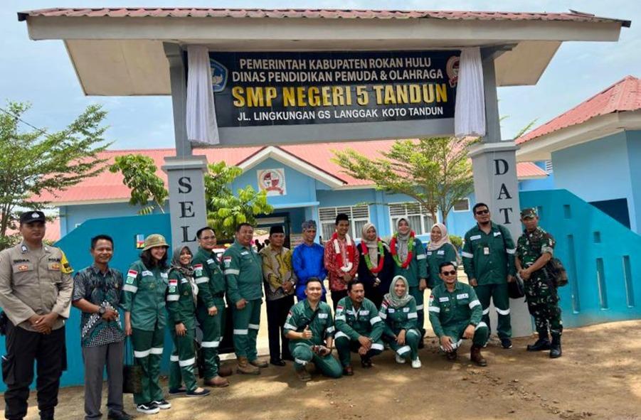 Di acara itu, Pimpinan dan Staff PT SPR Langgak beserta Kepala Sekolah SMP Negeri 5 Tandun serta Upika Kec. Tandun dan Kepala Desa Koto Tandun foto bersama setelah pembukaan selubung papan nama SMP Negeri 5 Tandun