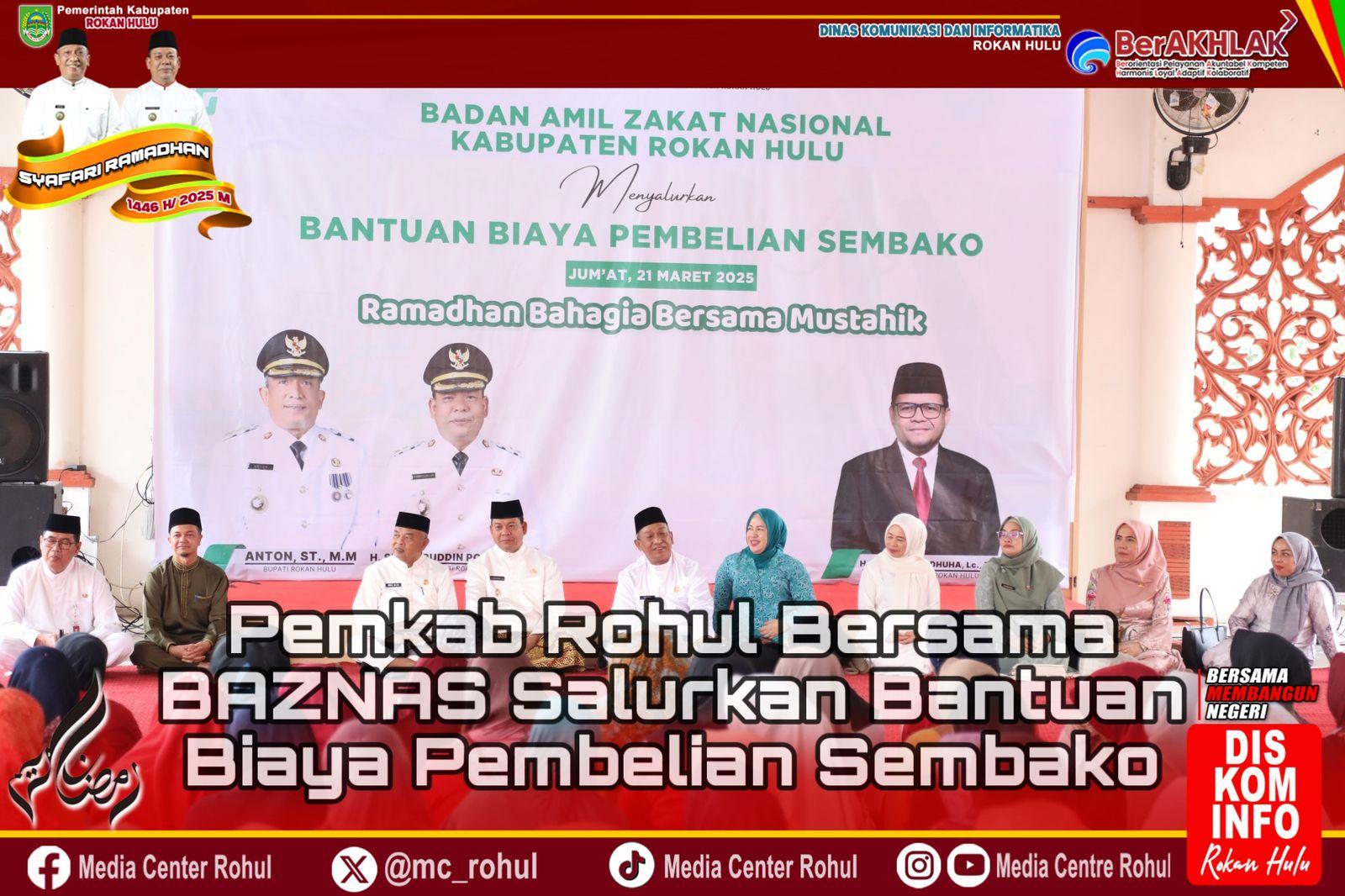 RIAUIDENTITAS.COM-ROHUL-BAZNAS Kabupaten Rokan Hulu mengadakan Kegiatan Penyaluran Bantuan Biaya Pembelian Sembako dengan tema "Ramadhan Bahagia Bersama Mustahik" yang di laksanakan di Pendopo Rumah Dinas Bupati Rokan Hulu, Jumat (21/03/2025).