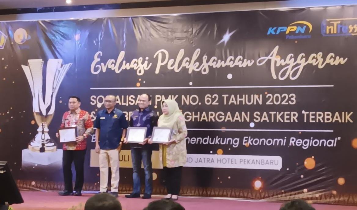 Penyerahan Piagam Penghargaan di terima Bupati Rohul H.Sukiman yang di Wakili Kepala DPKAD Rohul El Bizri S.STP.M.Si yang di serahkan langsung oleh Kepala Kantor KPPN Pekanbaru Arif Khuzaini, Kamis(27-07-2023).
