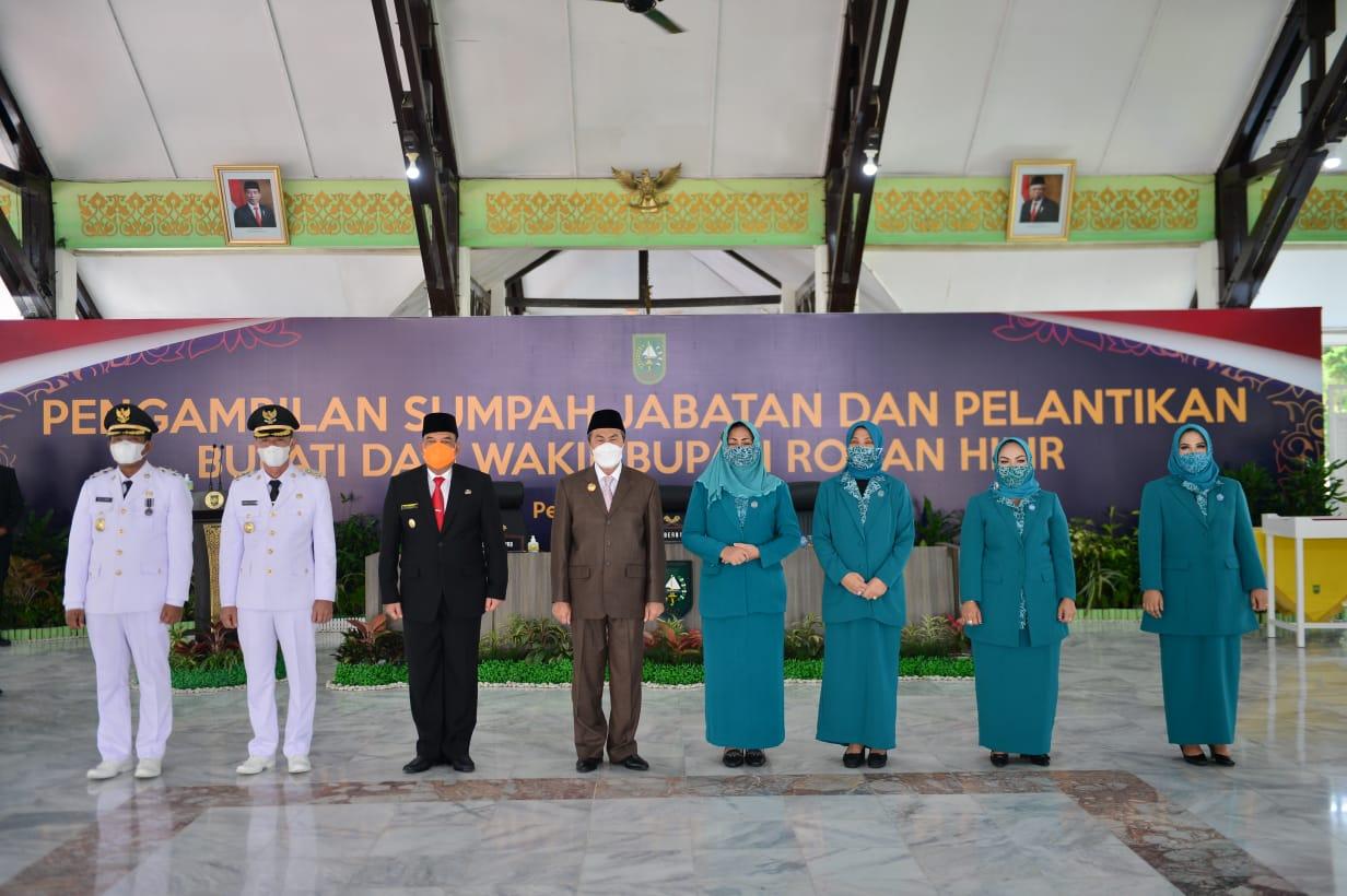 "Demi Allah saya bersumpah akan memenuhi kewajiban saya sebagai Bupati Rokan Hilir dan Wakil Bupati dengan sebaik-baiknya dan seadil-adilnya," ujar Afizal Sintong dan Sulaiman serentak dalam pengambilan sumpah jabatan yang dipandu Gubri.