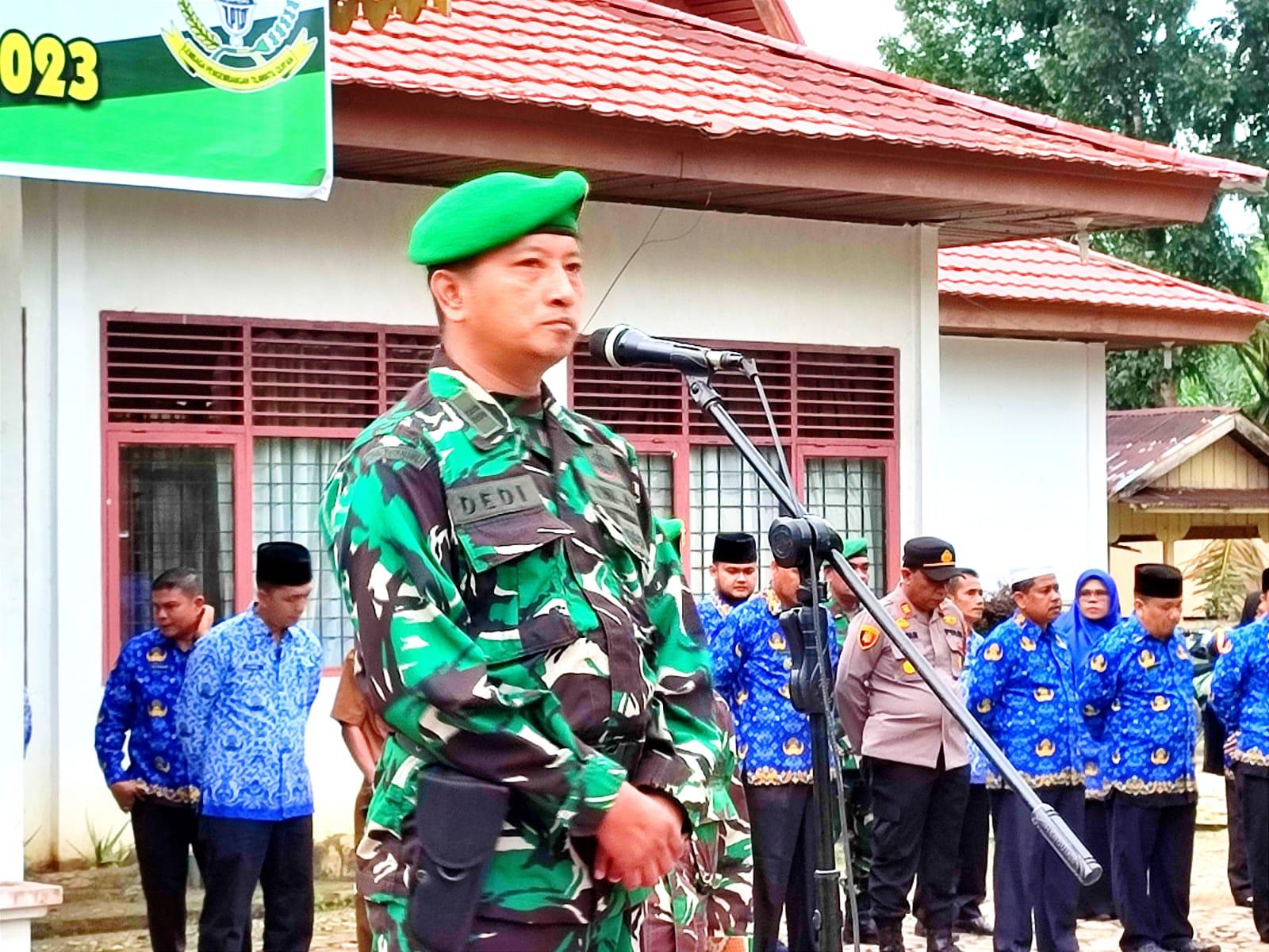 Upacara dipimpin Danramil 02 Rambah Kodim 0313/KPR Lettu Dedi, A.Md bersama Camat Rambah Zulfan Alwi, Kapolsek Rambah AKP Syafaruddin, SH dan dihadiri sejumlah Kepala Sekolah, Kepala Desa serta Kepala UPTD se Kecamatan Rambah dan dinas terkait mengikuti rangkaian upacara.