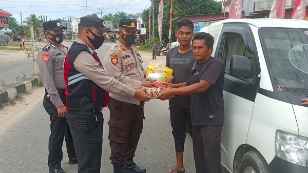 “Sebanyak 5 Paket Sembako beras 5 Kg, Minyak Goreng 2 Kg.Telur Ayam Satu Papan sudah kami bagikan kepada para pengendara sepeda motor yang melintas di jalan lintas Kabun Pasirpangaraian, untuk para kendara sepeda motor, semoga saja bantuan ini dapat meringankan beban keluarga mereka” Harap Kapolsek Kabun,