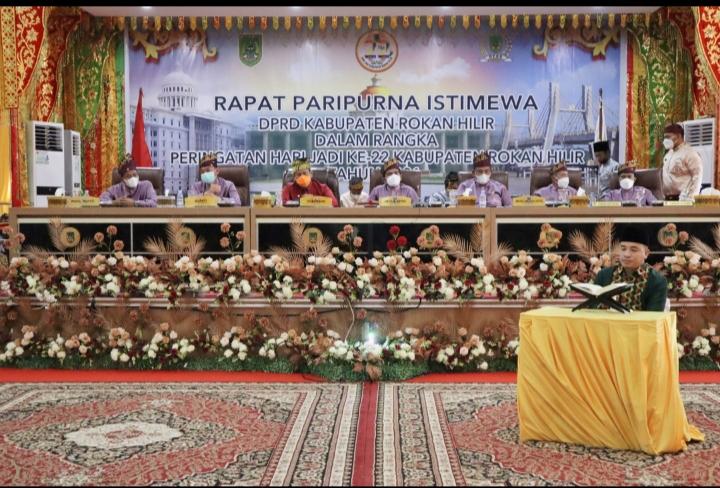 Dewan Perwakilan Rakyat Daerah (DPRD) Kabupaten Rokan Hilir (Rohil) menggelar rapat Paripurna Istimewa DPRD Rohil dalam rangka peringatan hari jadi ke 22 Kabupaten Rokan Hilir Tahun 2021, Senin (4/10/2021).