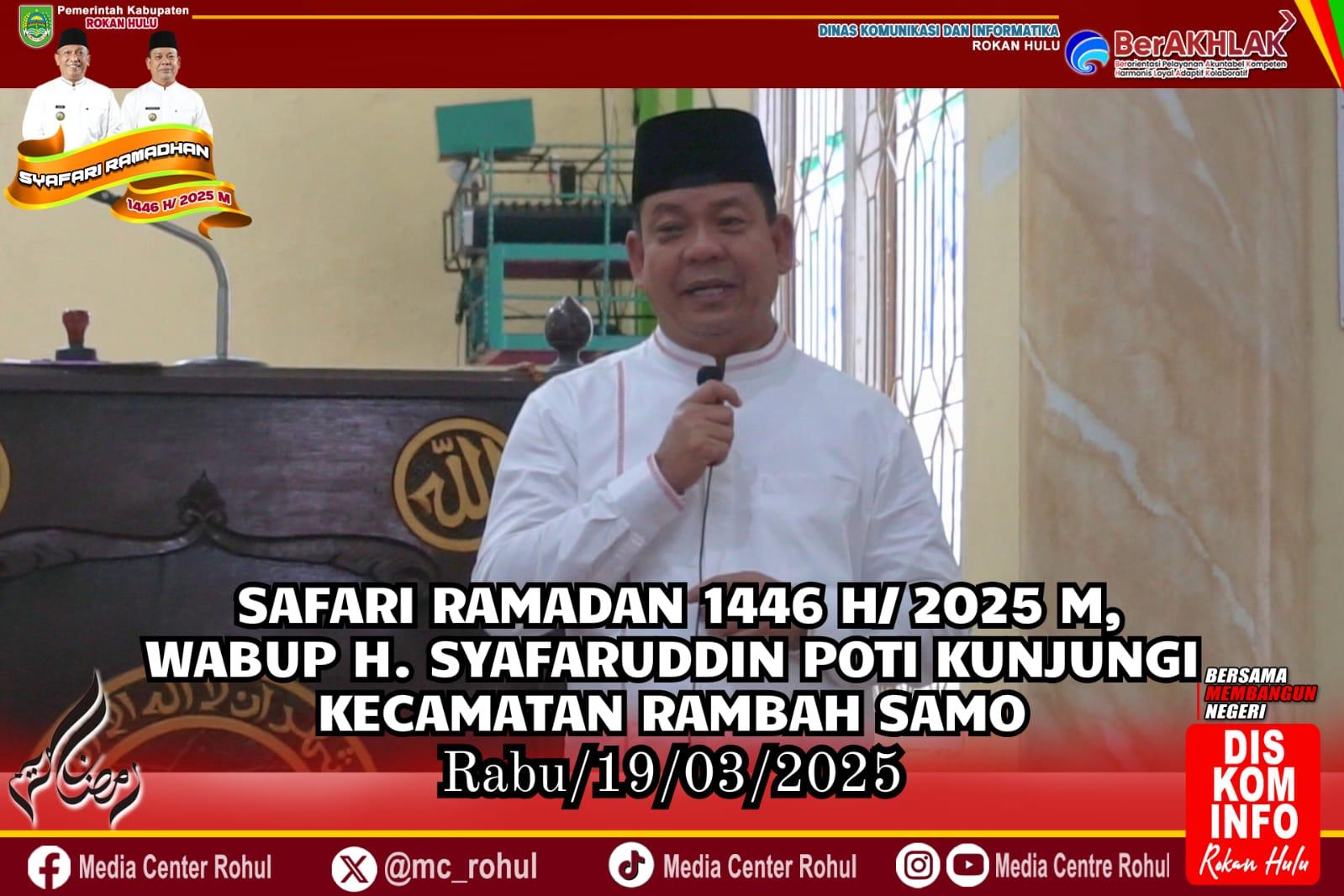 RIAUIDNTITAS.COM-ROHUL-Dalam rangka agenda rutin bulan suci Ramadan, Pemerintahan Kabupaten (Pemkab) Rokan Hulu (Rohul) laksanakan program Safari Ramadan dan berkunjung di 16 Kecamatan di Rohul, pada Rabu (19/03/2025) rombongan Safari Ramadan Pemkab Rohul berkunjung di Masjid Muslimin Desa Rambah Samo Barat Kecamatan Rambah Samo.