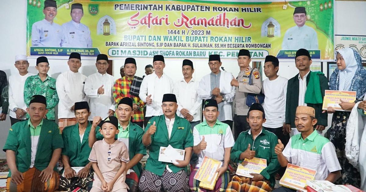 ROKAN HILIR-(RI)-Bupati Rokan Hilir Afrizal Sintong dan Ketua Tim Penggerak Tim Penggerak Pemberdayaan dan Kesejahteraan Keluarga (TP PKK) Sanimar Afrizal kembali melaksanakan Safari Ramadhan 1444H. Sesuai yang dijadwalkan, Bupati dan rombongannya Safari malam ke 27 ramadhan ini di Masjid As-Shofa Rokan Baru Kecamatan Pekaitan, Senin (18/4/2023).