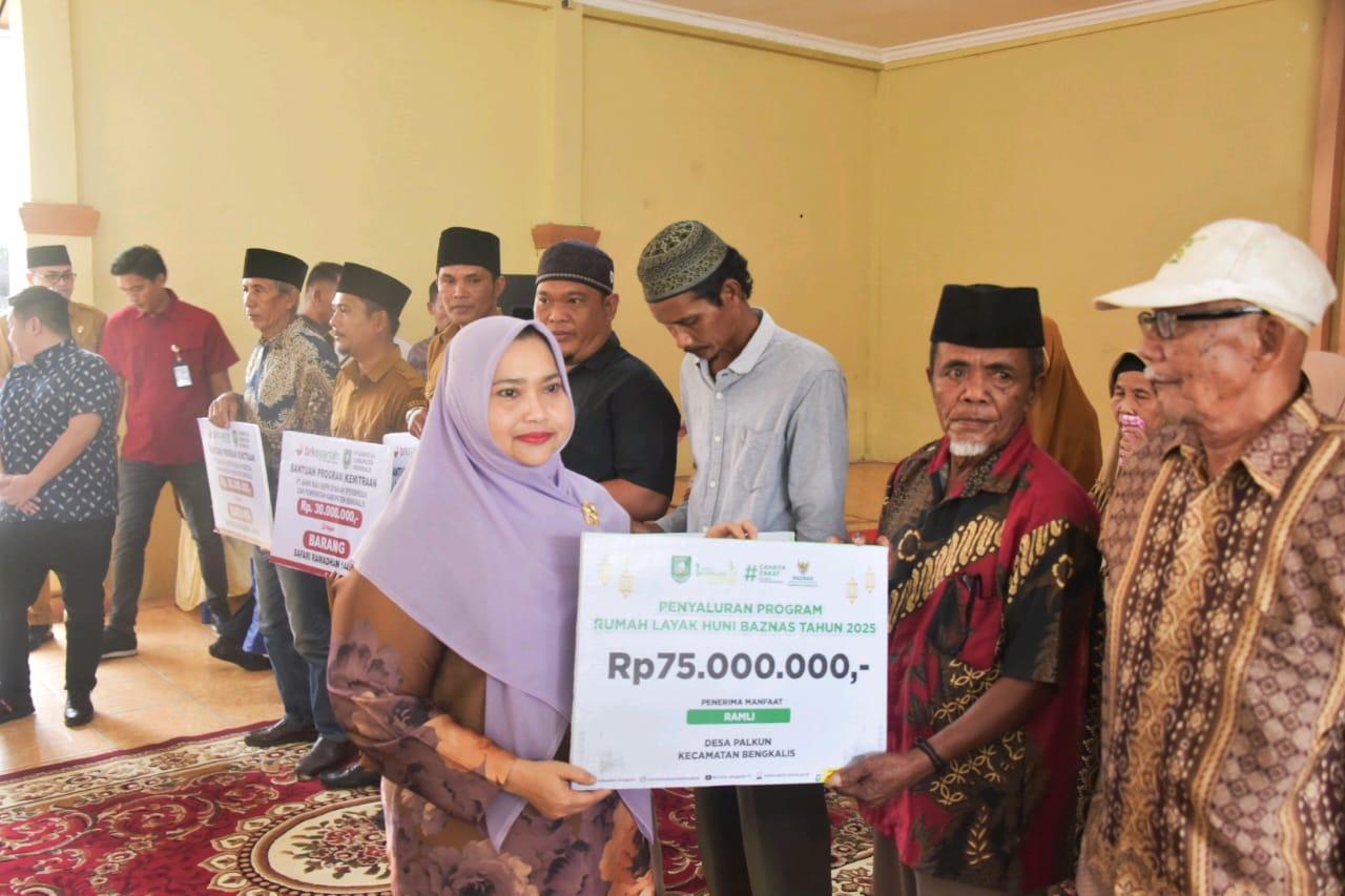 Adapun bantuan yang diserahkan Bupati Bengkalis, yakni bantuan rumah ibadah dari CSR BRK Syariah Bengkalis, pembangunan rumah Layak Huni dan bantuan kaum dhuafa dari Baznas Bengkalis, paket sembako dari K3S Dinas Sosial Bengkalis dan paket sembako dari Dharma Wanita Persatuan (DWP) Bengkalis.