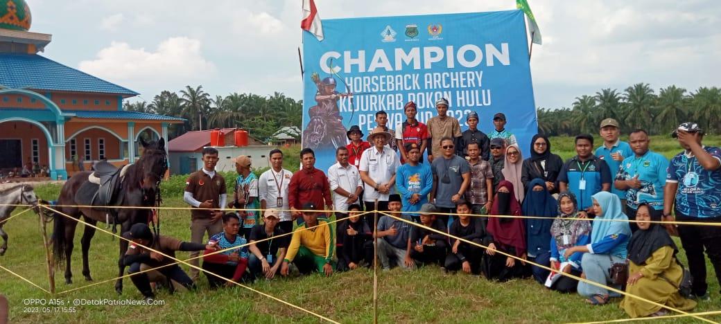 ROKAN HULU-(RI)-Ketua Umum Komite Olahraga Nasional Indonesia (KONI) Rokan Hulu (Rohul) Herry Islami, ST, MT menghadiri sekaligus membuka secara resmi kegiatan Champions Horseback Archery Kejurkab Rohul Peswa Cup I 2023, Rabu (17/5/2023).