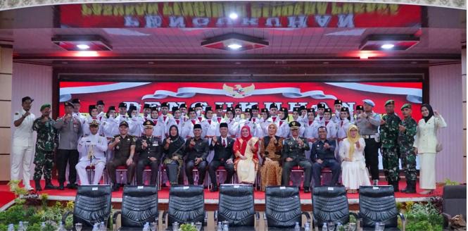 ROKAN HILIR-(RI)-Bupati Rokan Hilir (Rohil) Afrizal Sintong kukuhkan Pasukan Pengibar Bendera Pusaka (Paskibraka) Kabupaten Rohil, yang akan bertugas pada upacara peringatan Hari Ulang Tahun ke-78 Kemerdekaan Republik Indonesia pada 17 Agustus 2023.