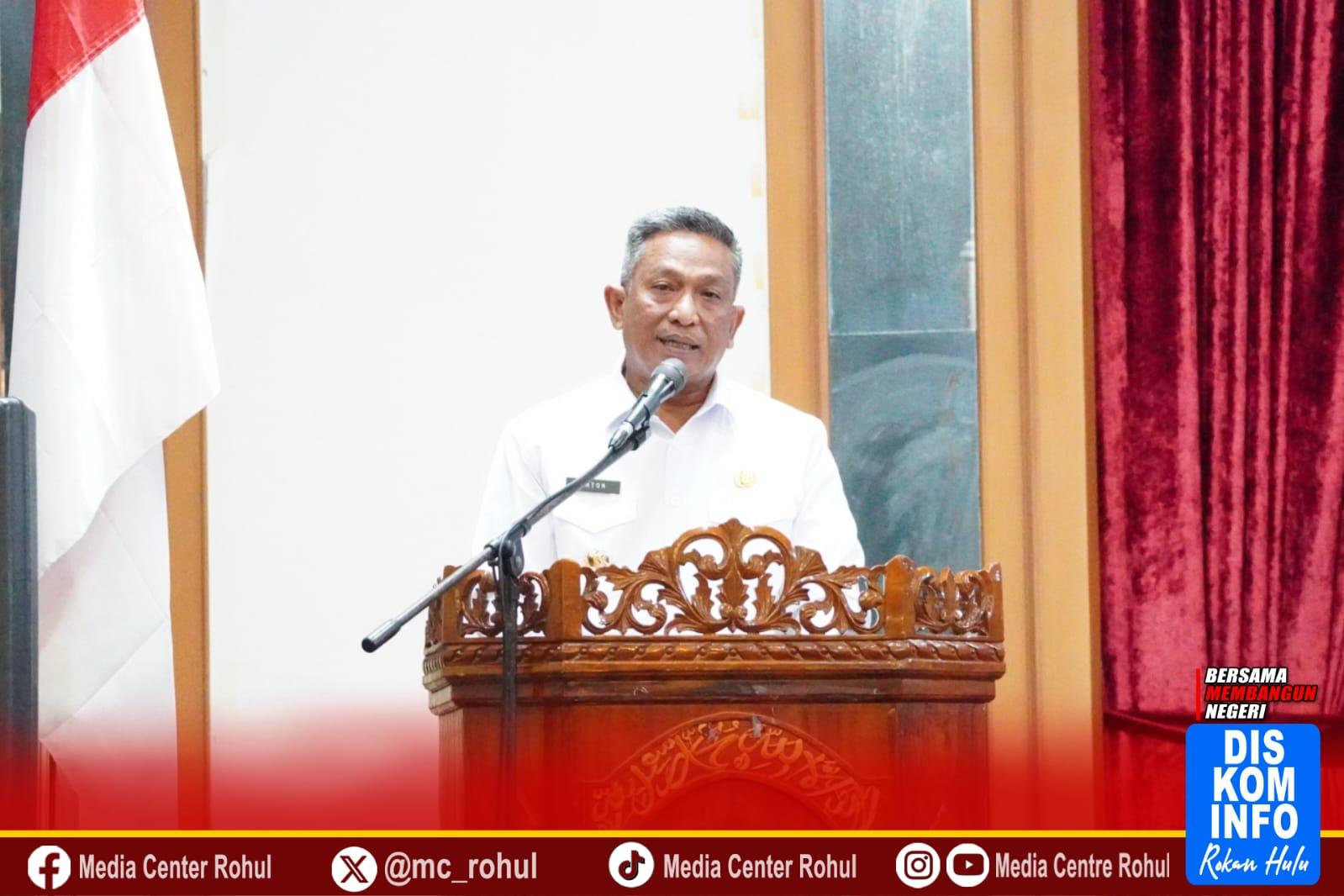 RIAUIDENTITAS. COM-ROHUL-Bupati Rokan Hulu Anton, ST, MM bersama asisten I Setda Rohul H. Fhatanalia Putra, S,Sos, dan Kepala OPD dilingkungan Pemkab Rohul mengikuti Rapat Koordinasi (Rakor) Penyelenggaraan Pemerintah Daerah secara virtual dari Ruang Rapat Rumah Dinas Bupati Rohul, Senin, (17/3/2025).
