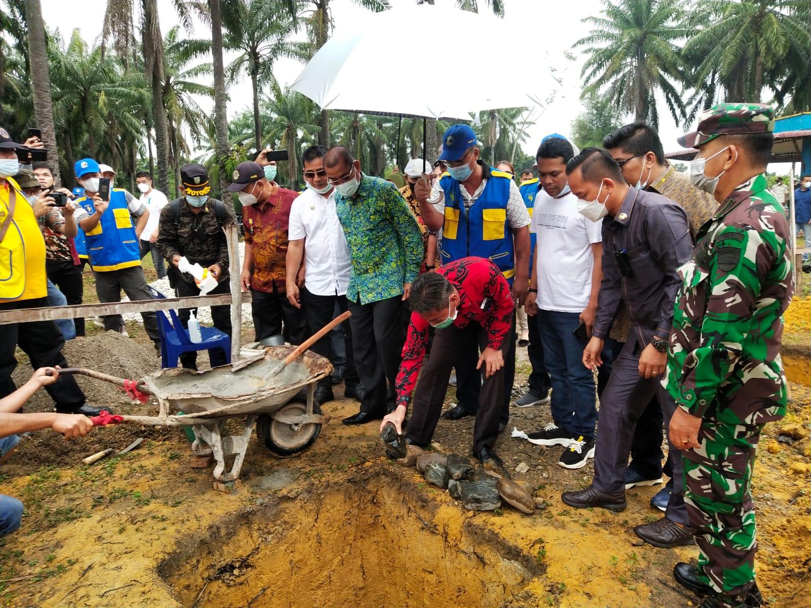 ROKAN HILIR- Bupati Rohil Afrizal Sintong letakkan batu pertama pembangunan Gedung Krematorium Dharma Bakti Luhur dan Gedung Kolumbarium atau biasa disebut rumah penitipan Abu di Jalinsum Riau-Sumut KM 01 Bagan Batu Kec. Bagan Sinembah Kab. Rohil, Rabu 20 Oktober 2021.