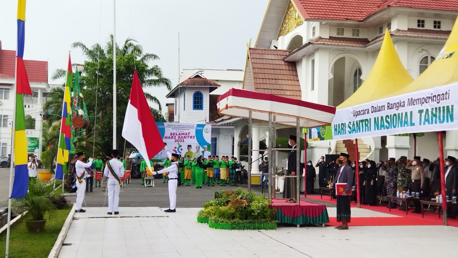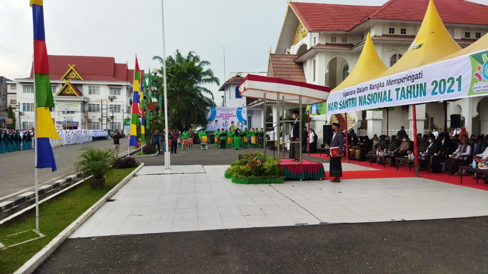 Rokan Hilir - Peringatan Hari Santri Nasional (HSN) di Kabupaten Rokan Hilir (Rohil) dipusatkan di ibu kota Bagansiapiapi. Upacara peringatan HSN yang bertemakan 'santri siaga jiwa raga' tersebut secara langsung di pimpin Bupati Rohil Afrizal Sintong SIP, Jumat (22/10/2021).