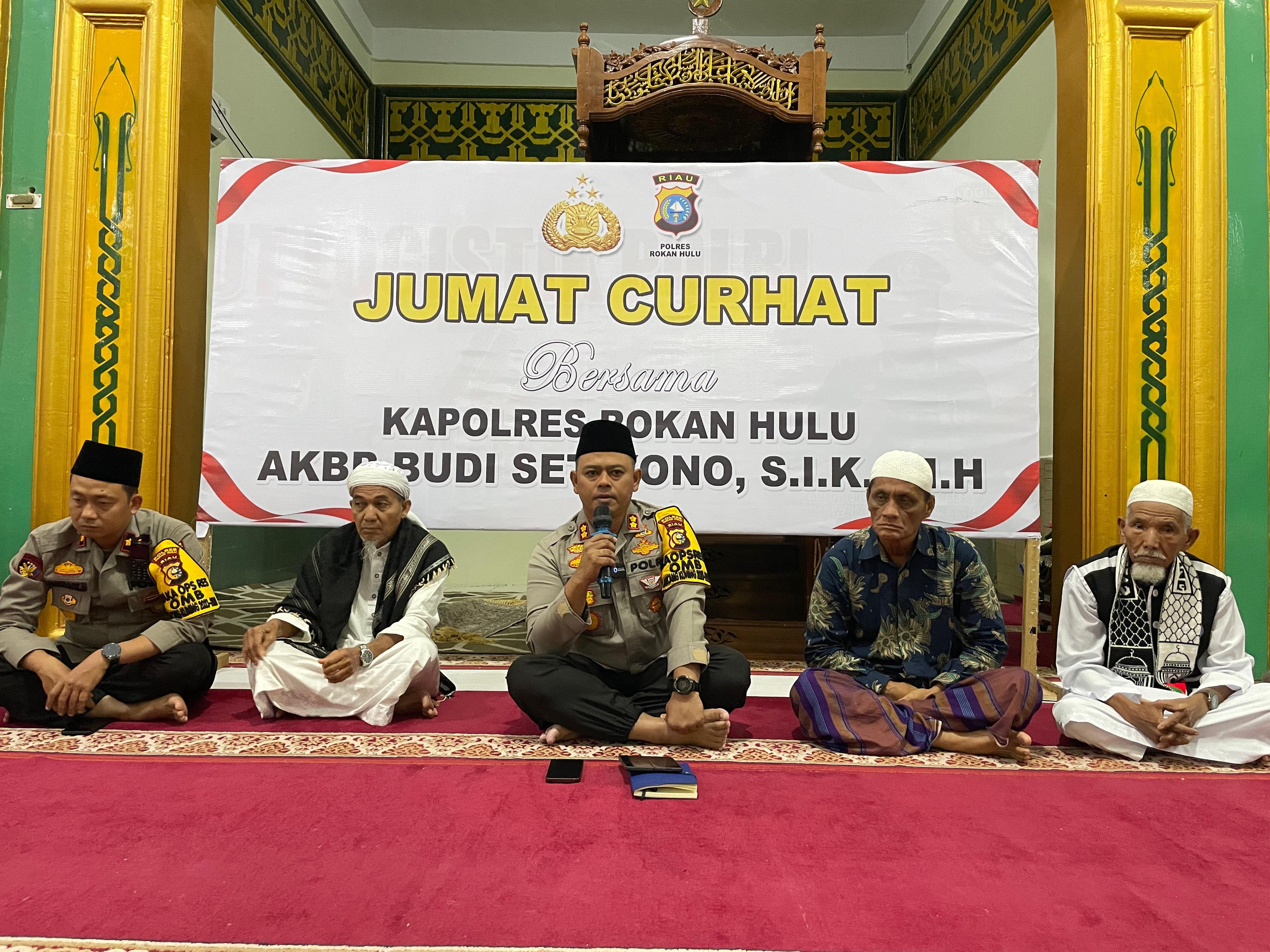 Beliau menerangkan bahwa, program Jumat Curhat merupakan kegiatan rutin yang dilaksanakan Jajaran Polri dalam meningkatkan silaturahmi dan dapat menampung segala keluh-kesah masyarakat secara langsung dan memberikan solusi terhadap masalah sosial yang terjadi di tengah Masyarakat.