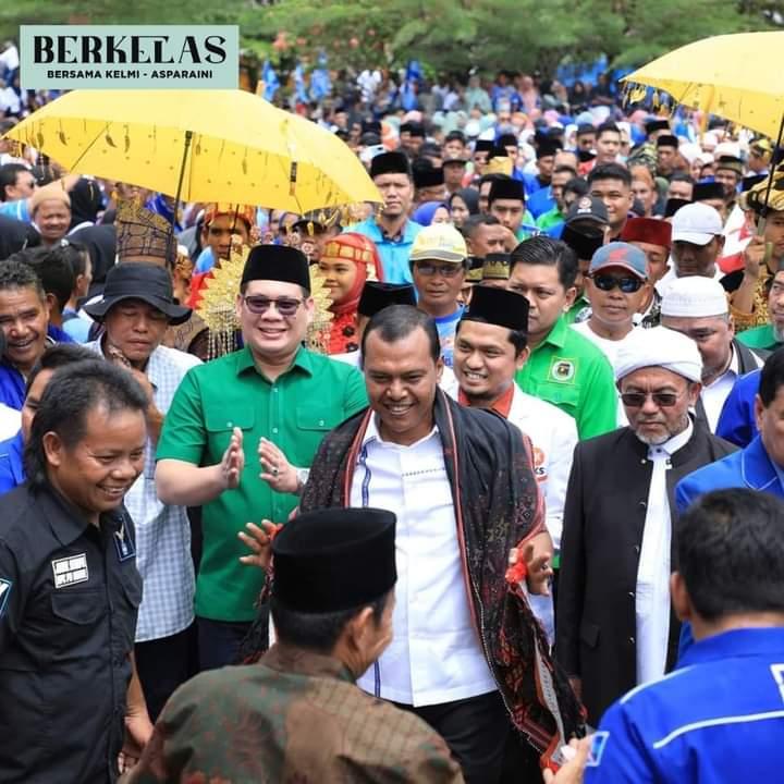 Diantar Ribuan Massa, Pasangan Kelmi Amri-Asparaini Aidarus Daftar ke KPU Rohul