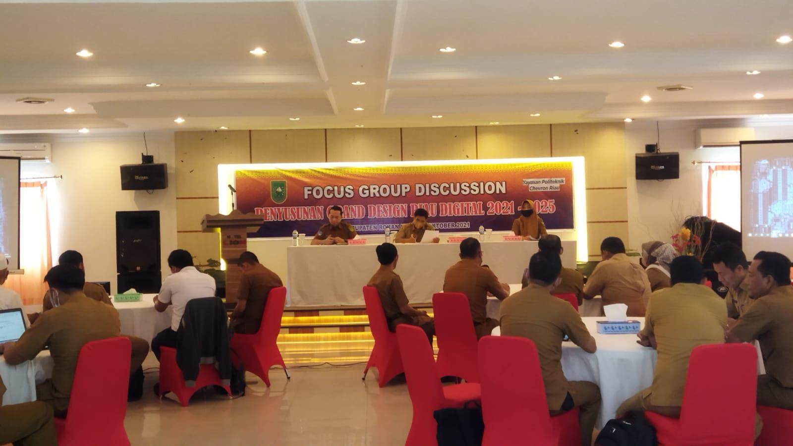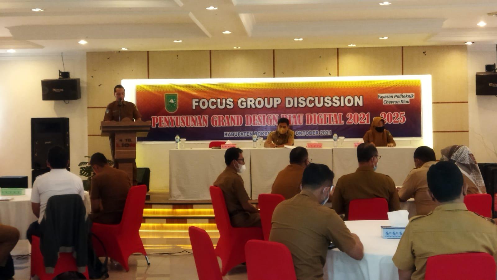 Rohil - Pemerintah Kabupaten Rokan Hilir (Rohil) melalui Dinas Komunikasi Informatika dan Statistik (Diskominfotik) Rohil menggelar Focus Group Discussion (FGD) pemaparan laporan pendahuluan penyusunan Grand Design Riau Digital tahun 2021-2025 oleh Yayasan Politeknik Chevron Riau (PCR), Selasa (19/10/2021).