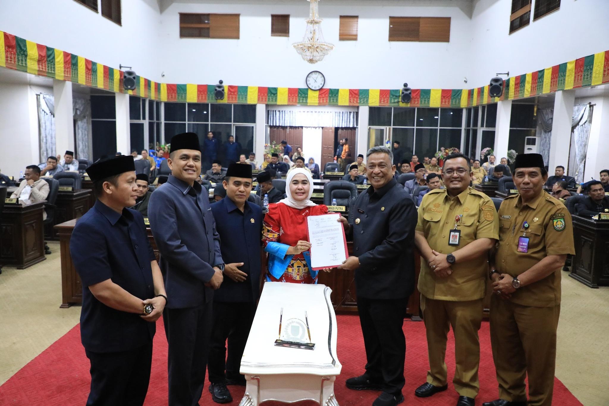 Penandatanganan berita acara persetujuan bersama pun dilakukan oleh keempat pimpinan DPRD Rohul bersama Bupati Rohul, disaksikan langsung oleh Sekda dan Setwan.