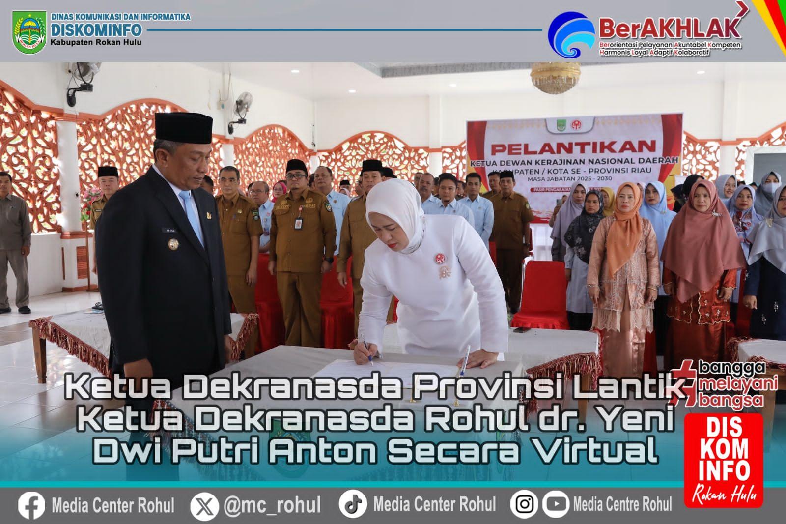 RIAUIDENTITAS.COM-ROHUL-Ketua Tim Penggerak PKK Kabupaten Rokan Hulu, dr. Yeni Dwi Putri Anton, resmi dilantik sebagai Ketua Dewan Kerajinan Nasional Daerah (Dekranasda) Kabupaten Rokan Hulu untuk periode 2025-2030. Pelantikan ini dilakukan secara virtual oleh Ketua Dekranasda Provinsi Riau, Henny Sasmita Wahid, pada Senin (24/3/2025).