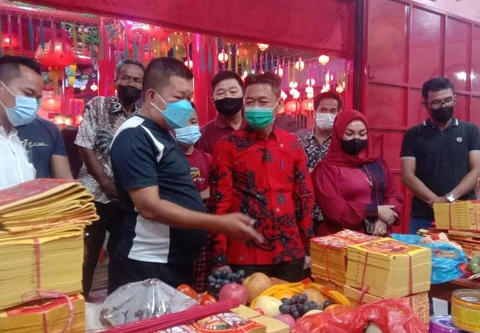 Bupati Rohil Afrizal Sintong didampingi Ketua PKK Sanimar, Jumat (25/6/2021) malam mengunjungi klenteng In Hok King yang terletak di ibu kota Bagansiapiapi.