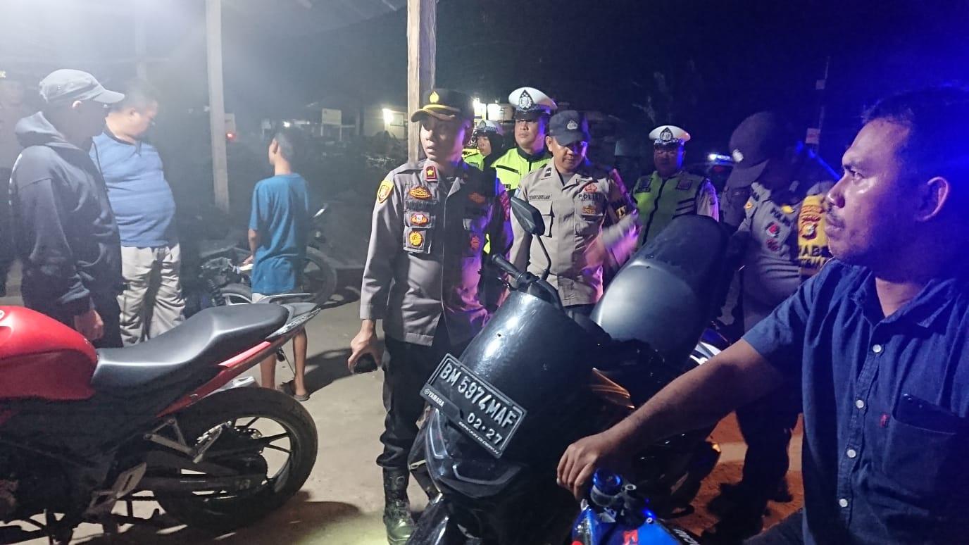 Pada kegiatan patroli ini, memeriksa terhadap remaja yang dicurigai, sedang nongkrong di pinggir jalan di desa Ngaso, dan mengamankan 3 unit sepeda motor yang menggunakan knalpot brong, milik Remaja/Pelajar di depan warung biliar milik Jhonson Silalahi.