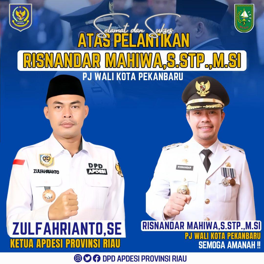 RIAUIDENTITAS.COM-PEKANBARU- Ketua DPD Asosiasi Pemerintah Desa Seluruh Indonesia (APDESI)-RIAU Zulfahrianto, S.E mengucapkan selamat dan sukses kepada Risnandar Mahiwa sebagai Penjabat (Pj) Walikota menggantikan Muflihun S.STP M.AP.