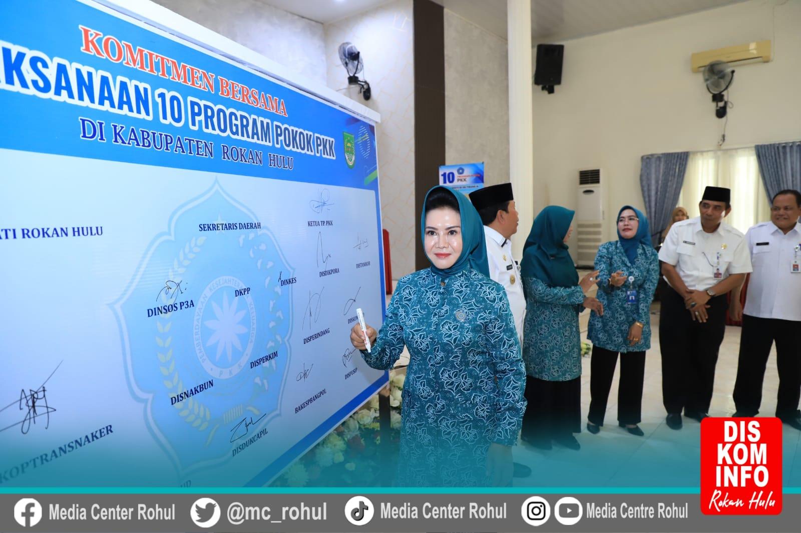 Sementara itu, Ketua TP PKK Rohul Hj. Peni Herawati Sukiman mengucapkan terima kasih kepada Bupati dan Kepala OPD terkait yang telah berkomitmen mendukung program TP PKK Rohul. "Saya berharap dengan adanya komitmen bersama ini, TP PKK Kabupaten Rokan Hulu semakin maju sehingga apapun kegiatan yang dilaksanakan, baik skala Provinsi Riau maupun Nasional, kita dapat mengikutinya dan berprestasi tentunya," harap Hj. Peni