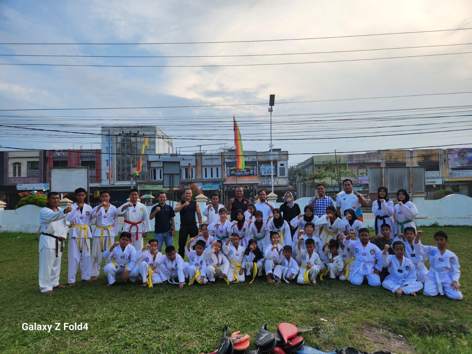 Kegiatan berlanjut ke pusat pelatihan para atlet Cabor Taekwondo yang sedang melaksanakan latihan di halam Kantor Camat Ujung Batu. Di sana terlihat pelatih atau Sabam Surya yang begitu serius memberikan materi latihan.