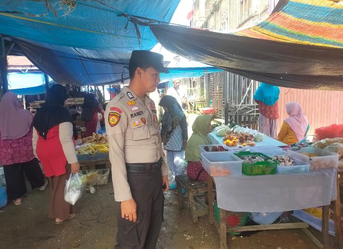 ROKAN HULU-(RI)-Personil Polsek Tambusai Polres Rokan Hulu (Rohul) Bripka R P Sitanggang dan Brigpol Randy Perdana, Minggu (2/4/2023) sekitar pukul 09.30 WIB, melaksanakan Patroli dan pengaturan lalin di Pasar Tradisional Tumpah - Dalu Dalu