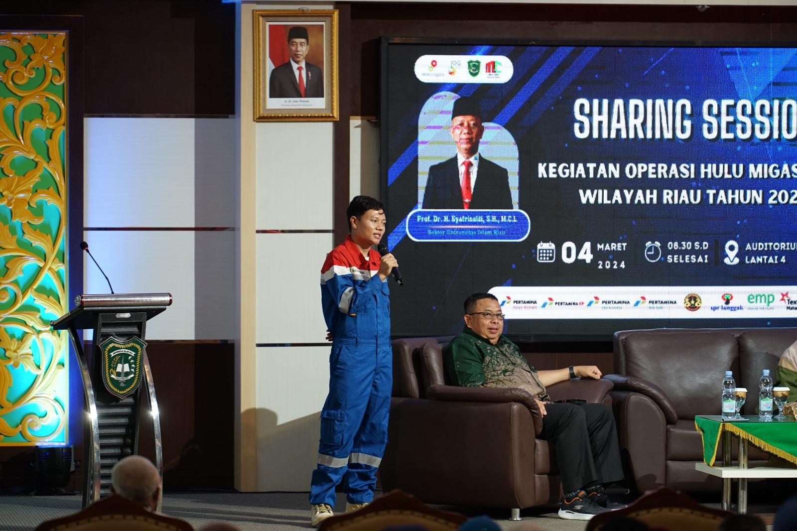 Acara sharing session dibagi dalam dua sesi yang masing-masing sesinya dipandu oleh dosen Dike Fitriansyah Putra, M.Sc, MBA dan DR. Ira Herawati ST,MT sebagai moderator. Di sesi paparan materi dari Lirik-Kampar field, Hasan Basri menjelaskan mengenai proses ekplorasi dan eksploitasi minyak bumi secara teknis. "Lirik-Kampar Field merupakan lapangan yang sudah cukup lama beroperasi memenuhi kebutuhan energi negeri, yakni sejak tahun 1936. Perusahaan berusaha menekan natural declining dengan berbagai inovasi untuk memaksimalkan produksi sumur-sumur tua", pungkasnya.