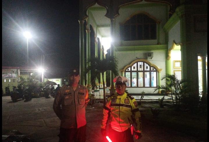 ROKAN HULU-Personil Polsek Kabun Polres Rokan Hulu (Rohul) Aiptu Willy Situmorang, Bripka ZH Tiber dan Bripka Tomy Saputra, Sabtu (1/4/2023) sekitar Pukul 19.30 WIB malam, laksanakan pengamanan Shalat Tarawih di Bulan Suci Ramadhan 1444 H / 2023 M di Masjid Nurul Iman Desa Giti.
