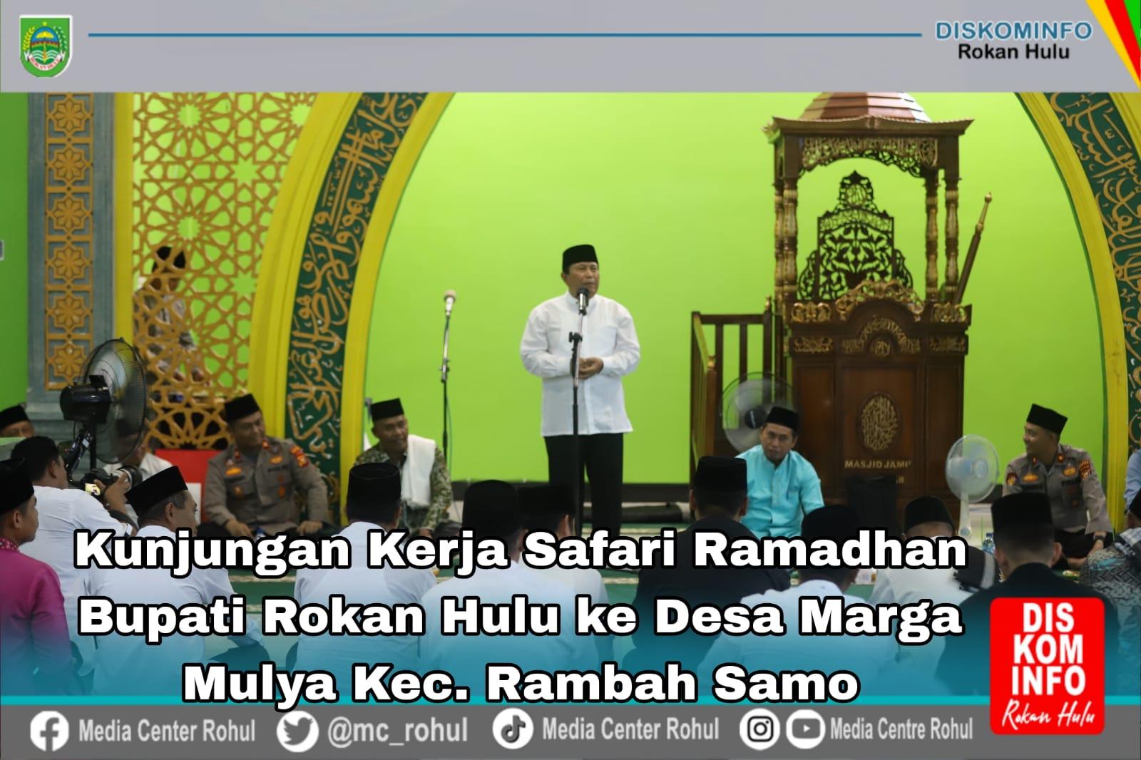 ROKAN HULU-(RI)-Dalam rangka agenda tahunan program Safari Ramadhan 1445 H/ 2024 M, Bupati Rokan Hulu (Rohul) H.Sukiman mengunjungi Kecamatan Rambah Samo Desa Marga Mulya di Masjid Ulul Azbab, Jum'at (22/03/2024).