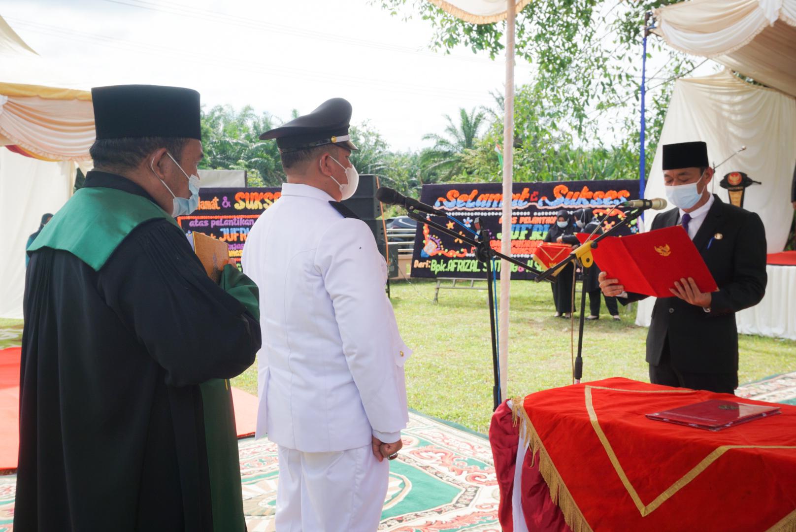 Bupati Rokan Hilir (Rohil) Afrizal Sintong sebelum melakukan pelantikan Datuk Penghulu Kasang Bangsawan Jufri ST, mengajak para tamu undangan dan masyarakat untuk membacakan Al-Qur'an surat Alfatihah.