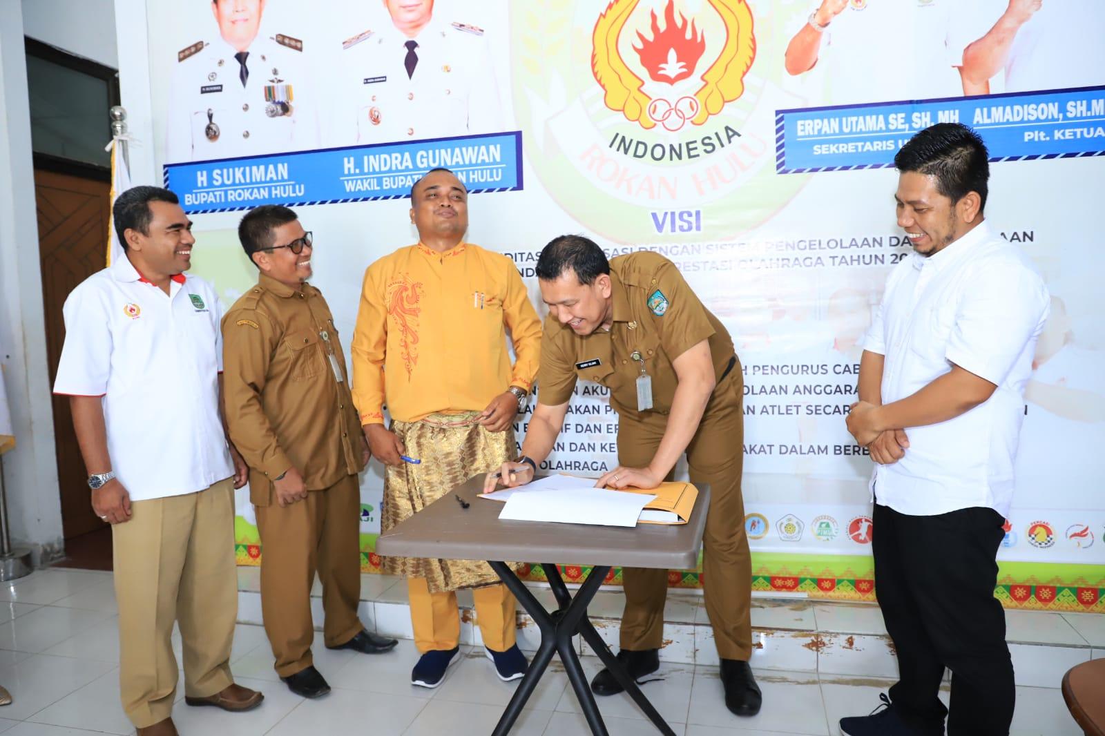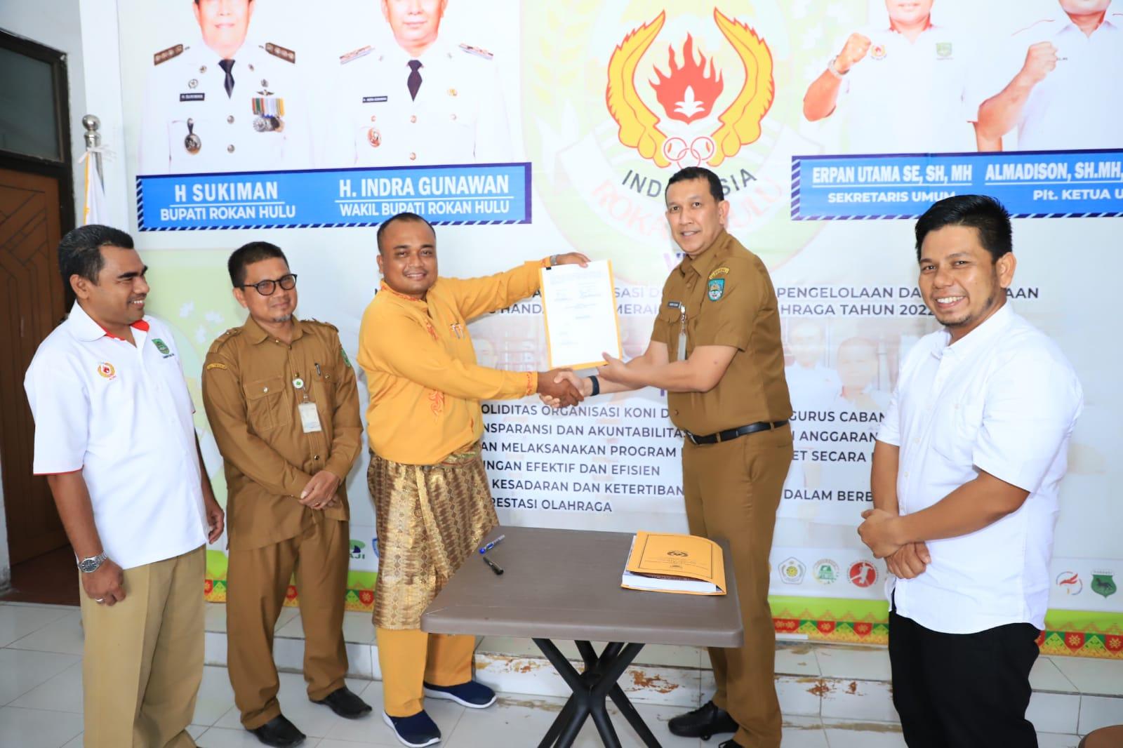 PASIRPENGARAIAN-(RI)-Pengurus Demisioner Komite Olahraga Nasional Indonesia (KONI) Kabupaten Rokan Hulu (Rohul) resmi melakukan Serahterima Jabatan (Sertijab) dengan pengurus KONI Rohul yang dilantik baru-baru ini.