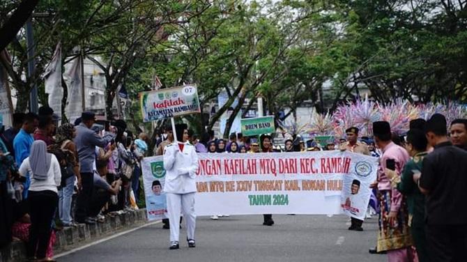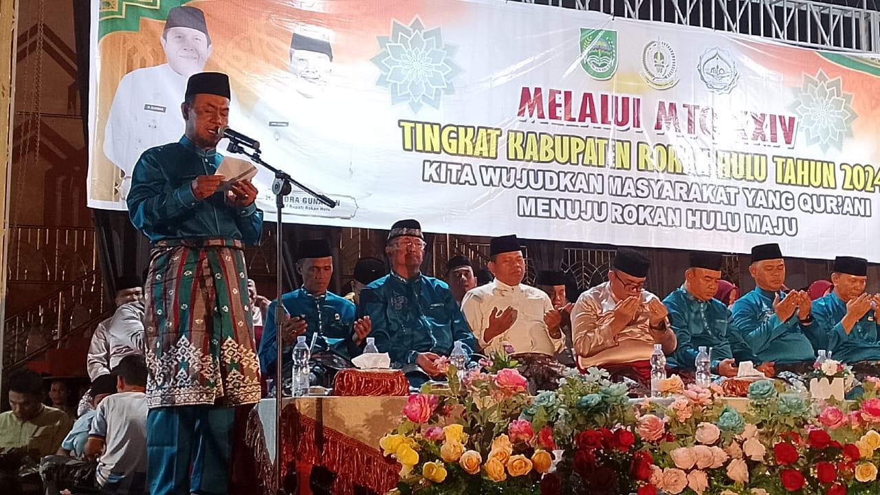 Wabup juga menyampaikan selamat kepada para kafilah yang mengikuti MTQ ke-24 tingkat Kabupaten Rokan Hulu, mengajak mereka untuk memanfaatkan momentum ini untuk menunjukkan pengetahuan, pemahaman, dan pengamalan isi Al-Quran.
