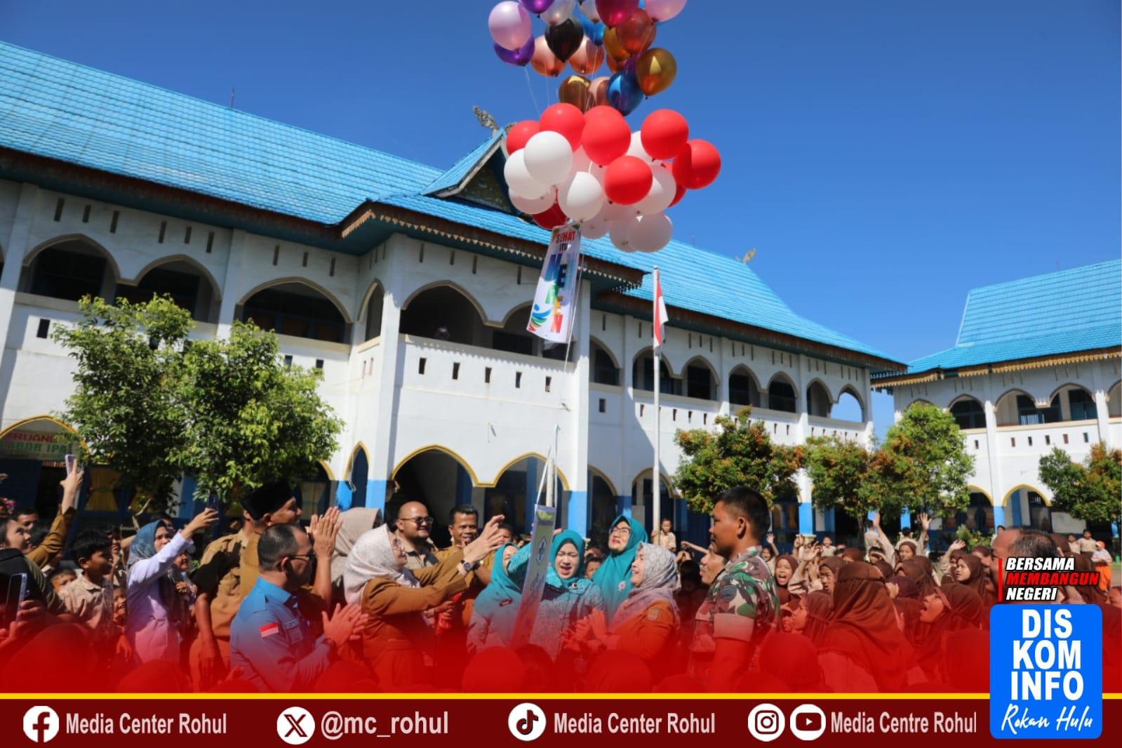 Peluncuran PKG ditandai dengan pelepasan balon oleh Ketua TP PKK Rokan Hulu, dr. Yeni Dwi Putri, di SDN 002 Rambah pada Selasa (12/8/2025).