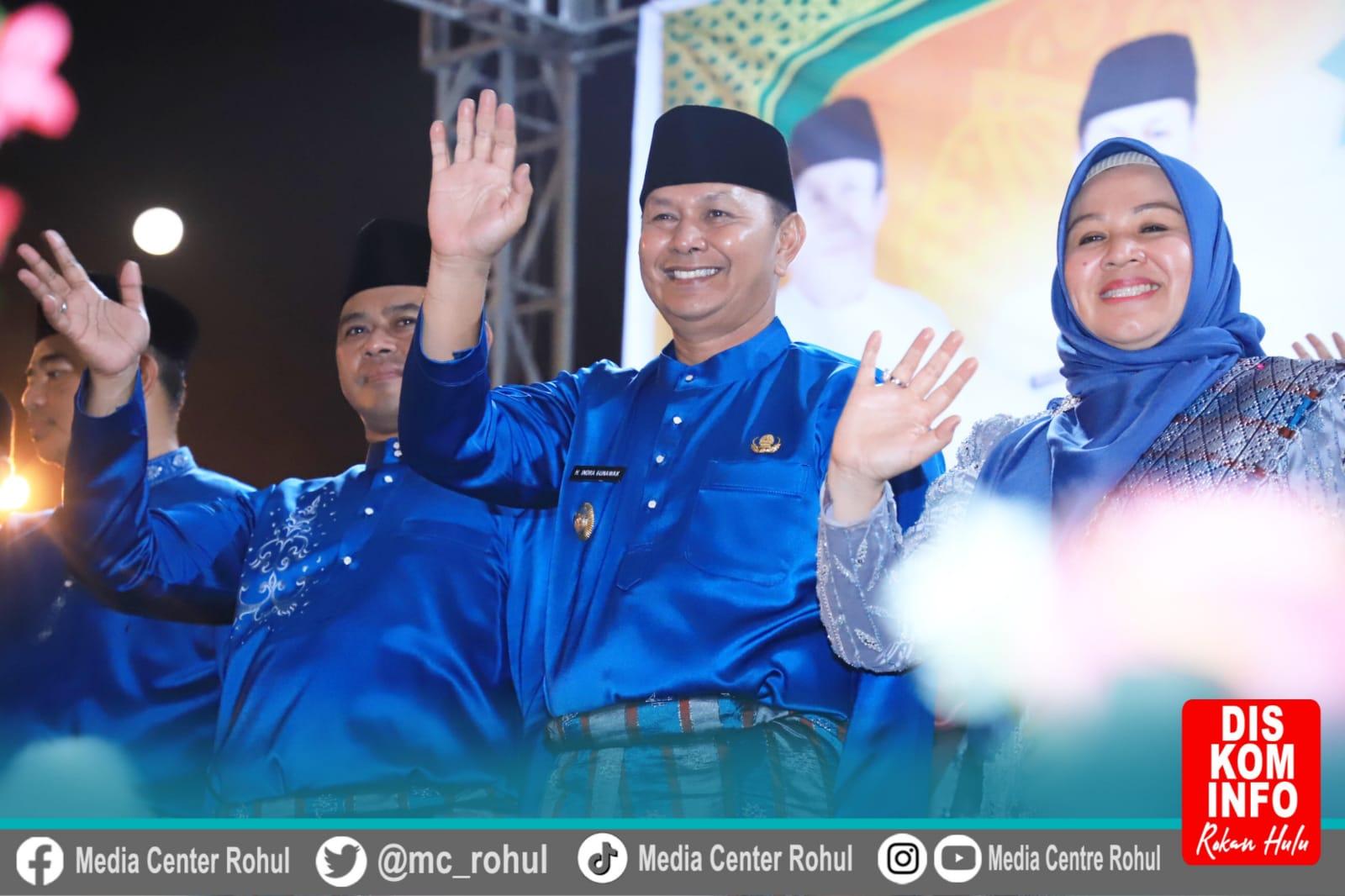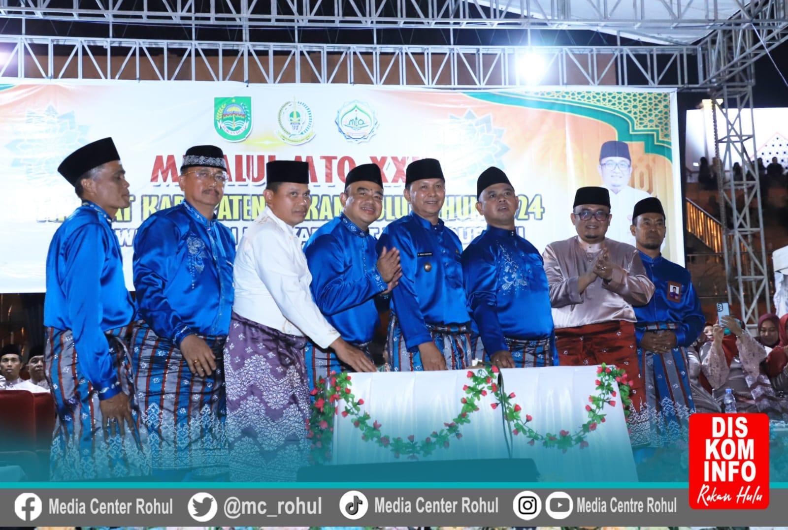 ROKAN HULU-(RI)-Malam Pembukaan Helatan Musabaqoh Tilawatil Quran (MTQ) ke 24 Tingkat Kabupaten Rokan Hulu(Rohul) berlangsung meriah yang ditandai dengan Penekanan Tombol Sirine oleh Wakil Bupati(Wabup) Rokan Hulu bersama Unsur Forkopimda dan dilanjutkan dengan Kilauan warna warni Kembang Api yang bertaburan di atas Astaka Purna MTQ ke 24 Dataran Tinggi Pematang Baih, Senin (26/2/2024) Sekira Pukul 22.00 Wib.